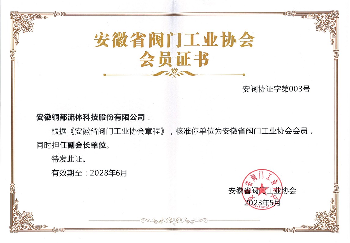 安徽省閥門(mén)工業(yè)協(xié)會(huì)副會(huì)長(zhǎng)單位