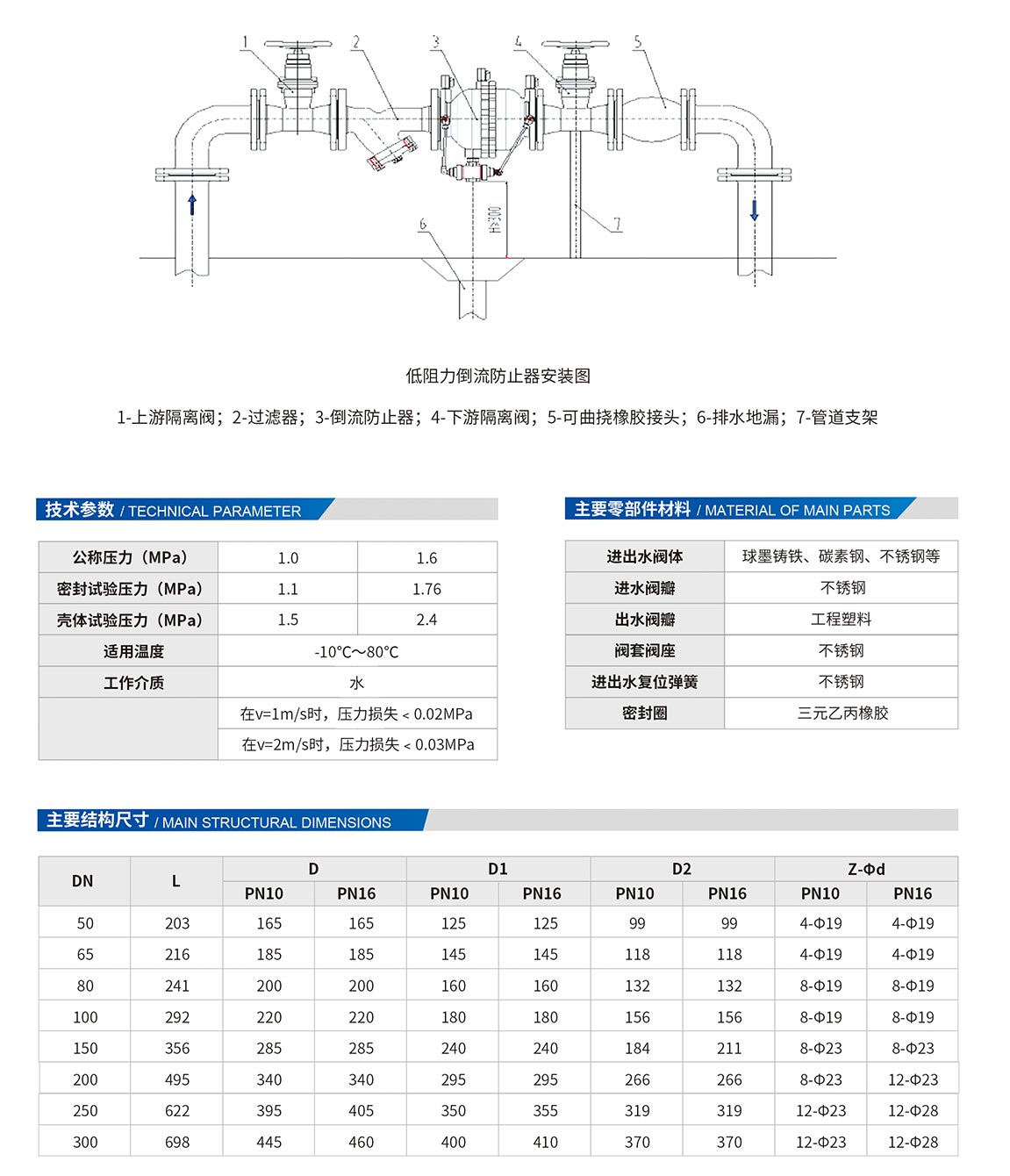 4、水損小,在回流工況下,中間腔始終與大氣相通,且在管中平均流速為2m/s時的壓力(水頭)損失小于0.04MPa。